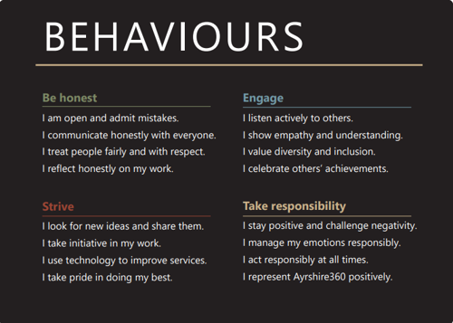 Ayrshire360 is fully committed to an inclusive culture that welcomes all people for who they are. We are implementing an Equality, Diversity and Inclusion programme of change that recognises we need diverse people to work both in the organisation and in the community. All jobs are evaluated by an independent panel, which includes trade union representatives, to ensure that all employees are recognised for the role in the organisation and not their gender or any other characteristic.