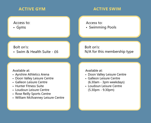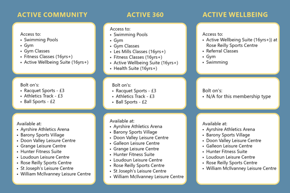 The Galleon Leisure Centre became part of East Ayrshire Leisure Trust in April 2025, and we are now preparing for the next steps as the Trust officially rebrands to Ayrshire360 on 1st April. As part of this transition, we will be launching our new membership packages that will replace both the Galleon’s and East Ayrshire Leisure’s current memberships.